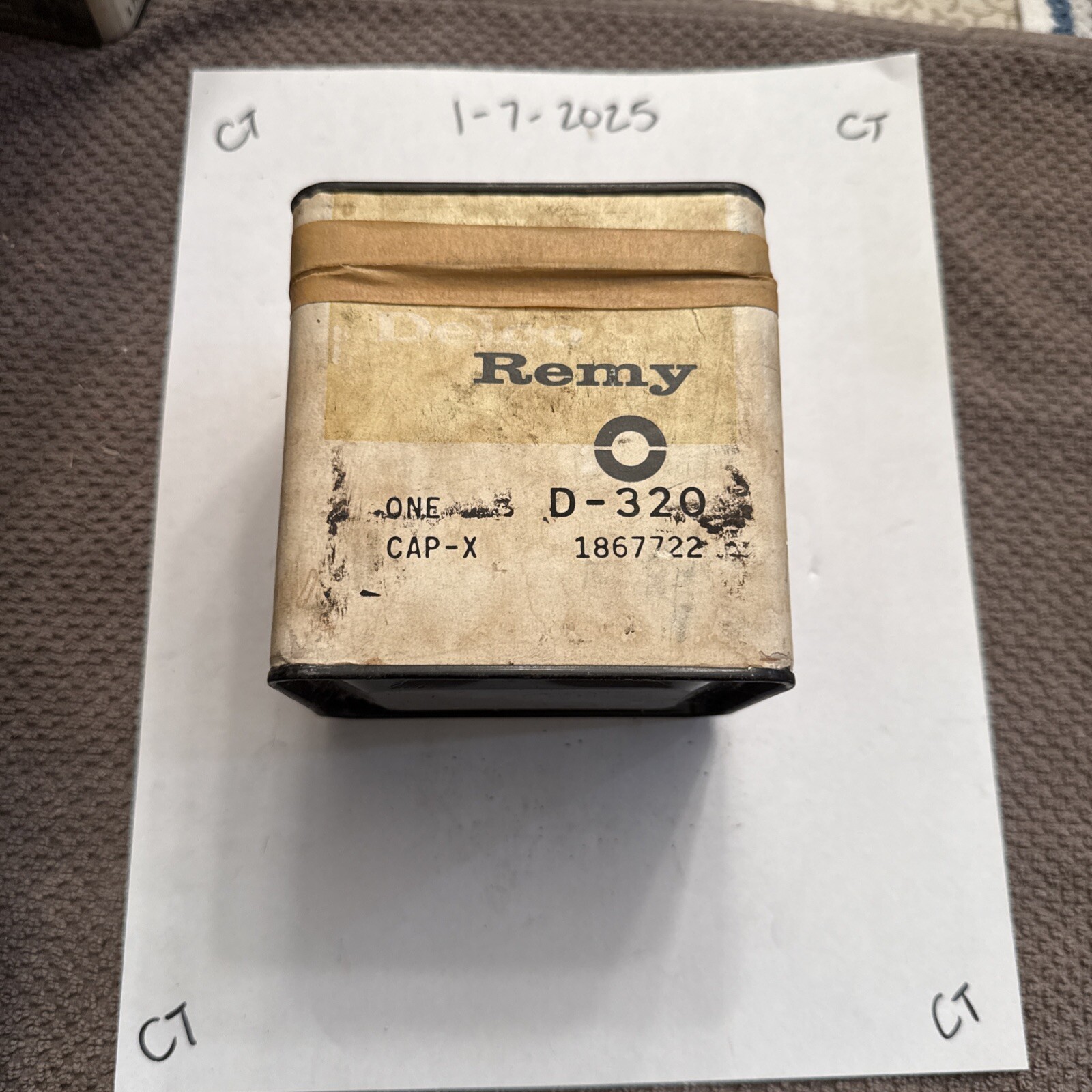 The Vintage Delco Remy Distributor Cap 6 Cylinder 1867722 NOS is a black distributor cap with spring clips mounting style, designed by Delco Remy for older model vehicles. This authentic vintage part is made in the United States and is suitable for 6-cylinder engines. It does not serve as a performance upgrade but rather as a replacement part for maintaining the originality of classic vehicles. Perfect for collectors or restorers looking for genuine vintage components for their cars.