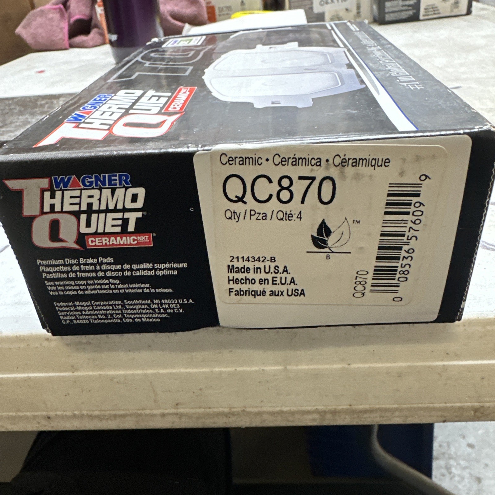 The Wagner Brake QC870 ThermoQuiet Disc Brake Pad Set Ceramic is a set of front brake pads made for 01-06 Lexus LS430. The brand is Wagner Brake and the type is Disc Brake Pad Set. The material is ceramic and the placement on the vehicle is front. The item width is 5.300. The manufacturer part number is QC870 and it has several interchange part numbers including D870CT, 16870, UP7745X, PGD870C, 105.0870, NAD870, 105.08700, 0446550240, GX870, D870, 446550170, 446550171, UP-7745-X, 04465-50170, 04465-50171, SS-7745-X, 301.08700, SS7745X, CX870, PXD870H, 17870, 105.00870, BE870, GNAD870, BC870, 446550240, BP2132, AE7745M, and RD870. It is made in the United States.