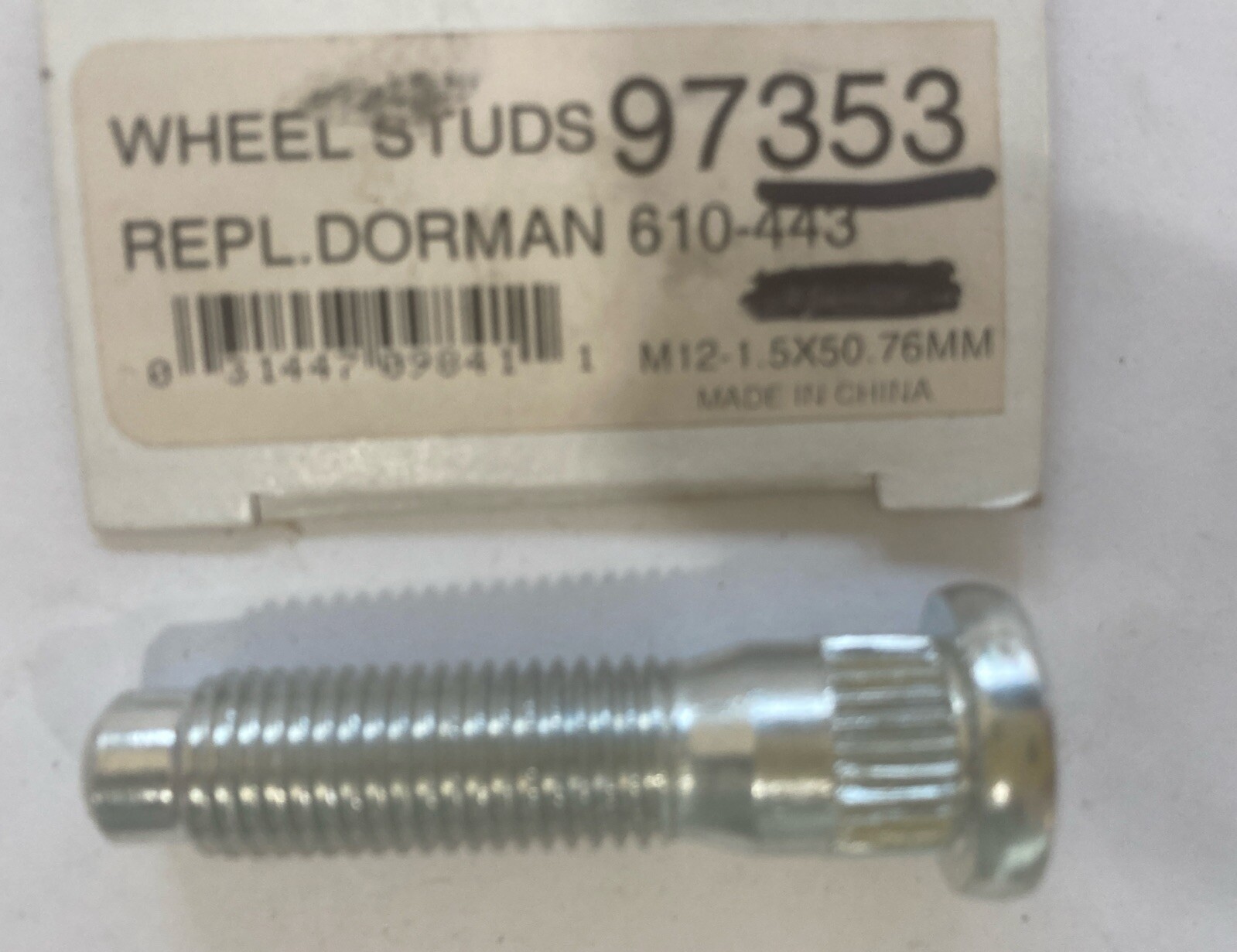 The product is a Wheel Lug Stud from the brand Dorman, specifically designed for use with 01-04 Ford Escape vehicles. It is sold individually as a single Lug Bolt, part number 610-443. This stud/bolt is essential for securing the wheel to the vehicle and maintaining proper tire alignment and safety while driving. It is a high-quality replacement part manufactured by Dorman, known for producing reliable automotive components.
