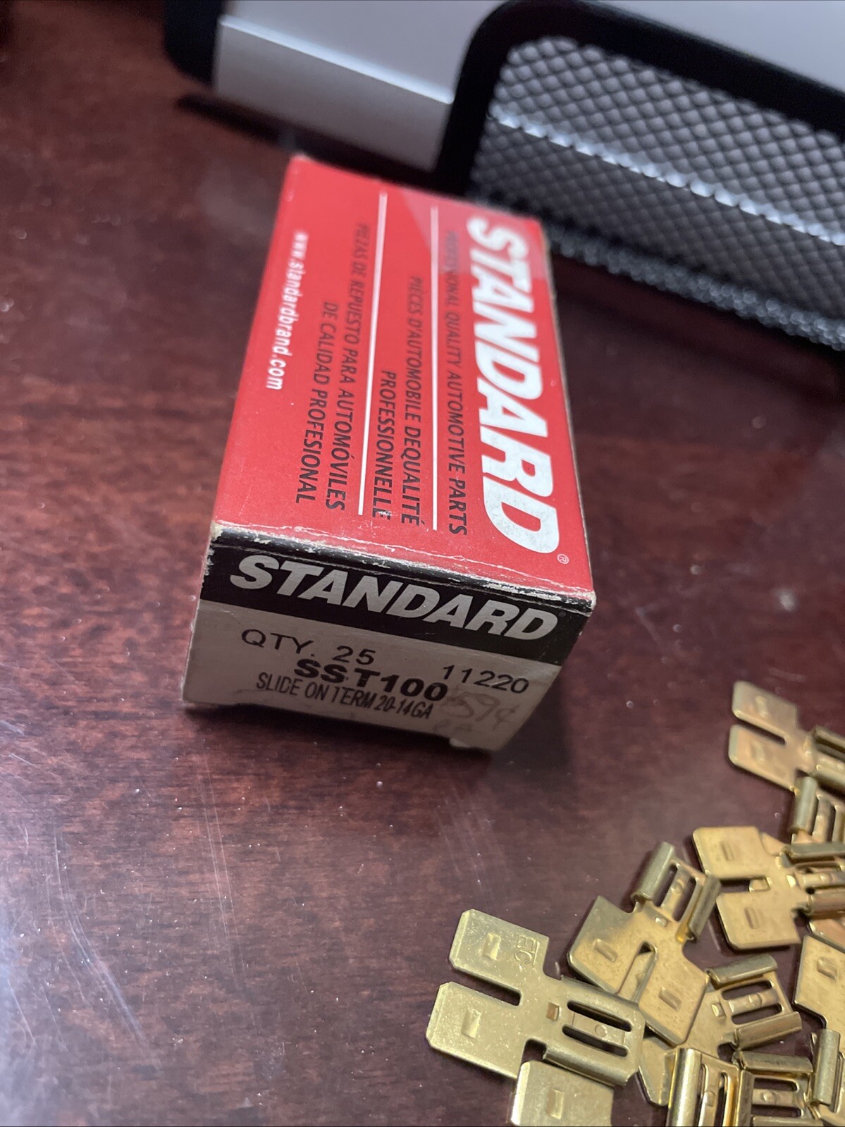 The product is a pack of 25 wire terminal clips manufactured by Standard Motor Products, with the manufacturer part number SST100. These clips are designed for use in car and truck interior parts and accessories, specifically switches and controls. The SKU for this product is STDSST100. This pack of wire terminal clips is a convenient solution for anyone needing to replace or install these clips in their vehicle's interior components.
